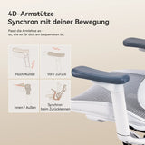 Die gepolsterten PU-Armlehnen sind in drei Richtungen verstellbar und bewegen sich beim Zurücklehnen mit der Rückenlehne mit.